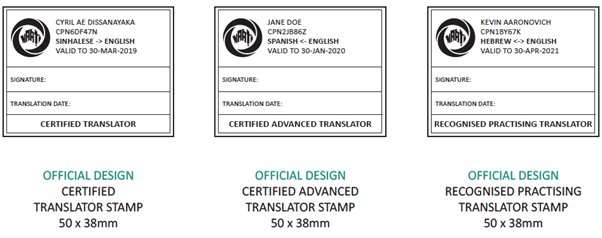 - 限制: 這些翻譯員 未納入 NAATI 現行的「再認證」制度,因此無法使用新版長方形印章或電子印章。